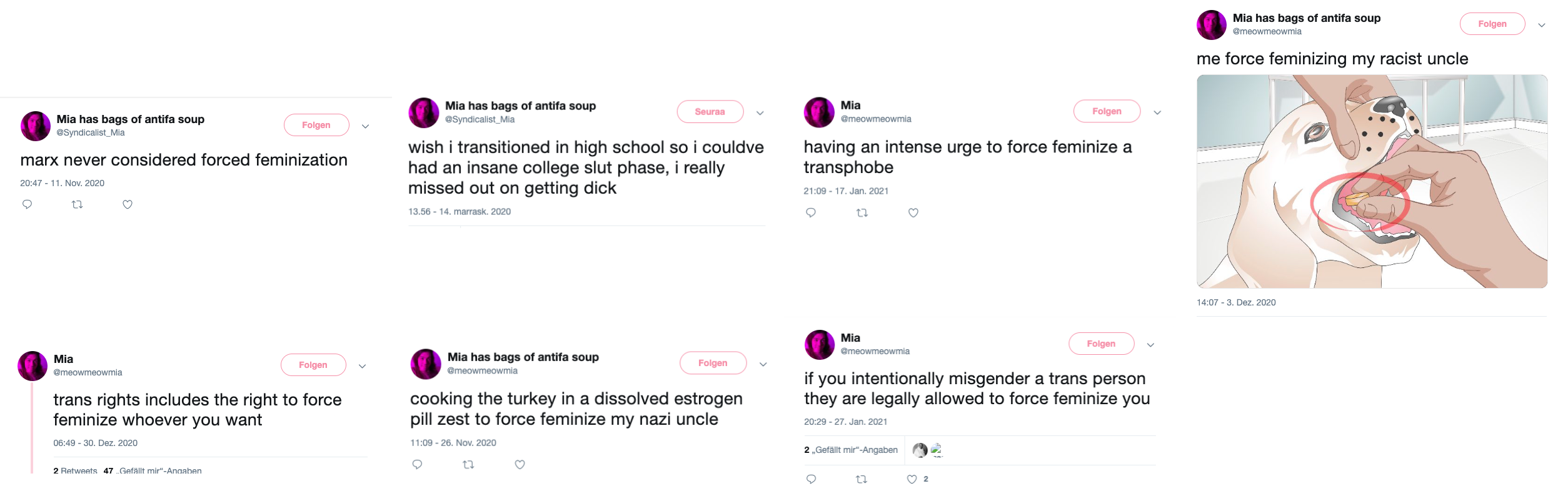Prominent transexual Antifa shitposter known as 'Junlper' Self professed antifa/communist, who participated in riots in Kenosha according to his Facebook post Featured in a Buzzfeed article, who said first person he'd ban is LibsofTikTok https://www.buzzfeednews.com/article/kelseyweekman/juniper-twitter-troll-meme-interview Twitter IDs : @JUNlPER > @Syndicalist_Mia > @meowmeowmia ID verified by a now deleted post where he posted an actblue donation, but didn't black out the text fully (I hid the CC/Phone info on edited image) : https://web.archive.org/web/20200603083320/https://twitter.com/Syndicalist_Mia/status/1267870718680760322 Deleted tweet archive - https://antifawatch.net/DeletedTweetsFiles/Syndicalist_Mia.html Worked at subway in 2020 according to actblue donation records This user has created a new account under "Beer Person" (@CantEverDie) Some extended lore - he's a pretty clear case of AGP, and has posted quite a bit about forcibly feminizing people (including his own uncle) see tweet collage for examples. He made an alt account to post nudes on called naked_mia_alt, but thankfully never posted anything there. He would also regularly post looking for gay sex on twitter with people near kenosha - https://web.archive.org/web/20201110080130/https://twitter.com/Syndicalist_Mia/status/1326072428167049216 https://web.archive.org/web/20201110082603/https://twitter.com/Syndicalist_Mia/status/1326078572507836416 https://web.archive.org/web/20201110083023/https://twitter.com/Syndicalist_Mia/status/1326079651303870465 https://web.archive.org/web/20201110073407/https://twitter.com/Syndicalist_Mia/status/1326065516331593728 https://web.archive.org/web/20201110081024/https://twitter.com/Syndicalist_Mia/status/1326074632747839488 He used to be one of the most frequent posters on the chapotraphouse subreddit under the account Hee443TS (you can see old tweets referencing that account with him in it here https://x.com/search?q=Hee443TS&src=typed_query&f=media) , but has since deleted that account. Was active in other subreddits that come as no surprise like AgainstHateSubreddits and trans stuff. reddit archive submissions - https://ihsoyct.github.io/?backend=artic_shift&mode=submissions&author=Hee443TS&limit=100&sort=desc comments https://ihsoyct.github.io/?backend=artic_shift&mode=comments&author=Hee443TS&limit=100&sort=desc