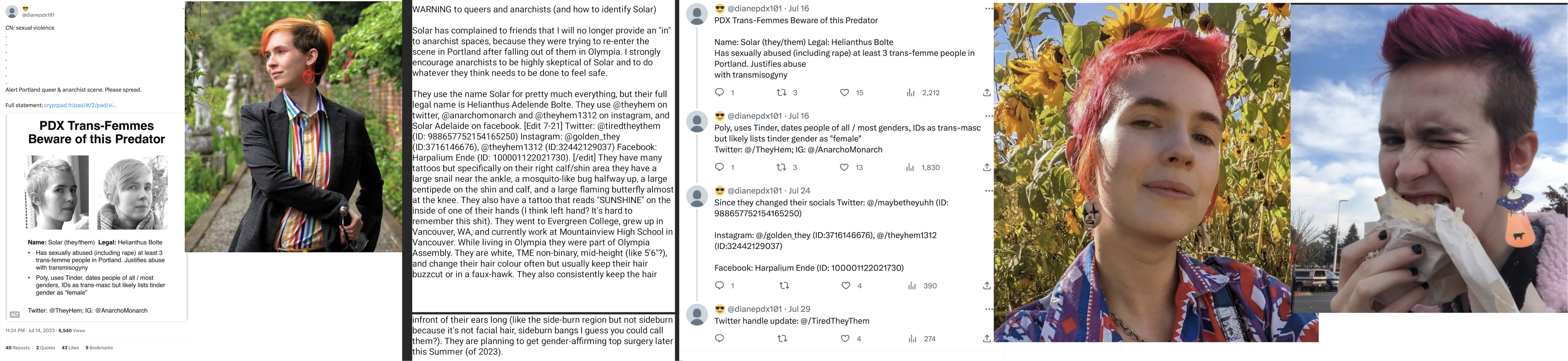 Nokomis Maia Lee was arrested at a June 2025 immigration protest in Portland and charged with failure to obey a lawful order. Her only prior was for driving on a suspended license. She lives in Grand Ronde, west of Salem. Nokomis has a "degree" in cosmetology and works as a hairdresser. She has a lot of what appear to be prison or homemade tats on her right hand. https://archive.ph/rhHY2#selection-1691.207-1691.218