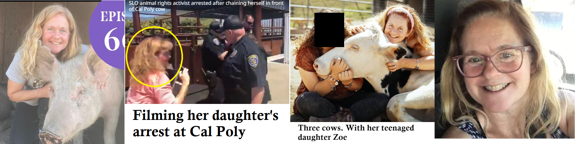 Sherstin Louise Rosenberg (DOB: 07/22/69) is a veterinarian and the mother of prominent animal rights activist Zoe Rosenberg who works with Direct Action Everywhere (DxE). Sherstin Rosenberg is an animal rights radical herself and is probably responsible for Zoe's radicalization. She helped Zoe start a chicken sanctuary called Happy Hen Chicken Rescue in the early 2000s. In 2018, she was arrested along with her teen daughter and another activist associated with Direct Action Everywhere (DxE) when they tried to "rescue" a cow at Cal Poly. Zoe chained herself to the cow pen and Sherstin filmed her daughter's arrest. Sherstin was charged with contributing to the delinquency of a minor for her role in the incident. The dynamic duo were arrested again for trying to rescue a pig at Cal Poly and were banned from campus. The elder Rosenberg is probably not a member of DxE but she's obviously an ally. Rosenberg wrote an article for DxE's blog in 2022. She also testified as an expert witness at the recent pignapping trial of DxE founder Wayne Hsiung (https://antifawatch.net/ViewReport/02b4d408) in Utah. She received a Humane Society award in 2017. She lives on a rural property south of San Luis Obispo. https://archive.ph/VpOf8 https://archive.ph/wsuTg https://archive.ph/qk0CJ https://archive.ph/xBSeu#selection-913.314-913.332 https://www.happyhen.org/