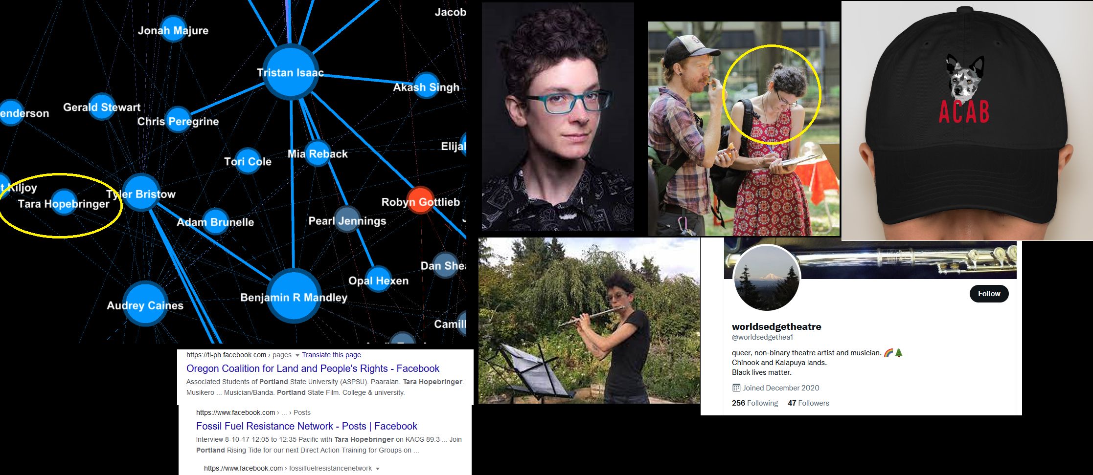 She's allegedly connected to the Tristan Romine-Mann (Tristan Isaac) gang within Portland's Antifa. Hopebringer seems to be into environmental issues as many other Antifa in the Isaac group are. She self-identifies as queer and non-binary and she's believed to be a biological female. She's a flutist and play writer and she may play professionally; she's played at numerous Portland venues and local festivals and she was in a band called "Heavy Nettle". She wrote a play on racial justice. Hopebringer's surname may be an alias but she uses it everywhere. She purchased an ACAB baseball cap to support the radical group Rising Tide. https://archive.vn/ibo53, https://archive.vn/KAswW, https://archive.vn/87AZp, https://archive.vn/u1udY