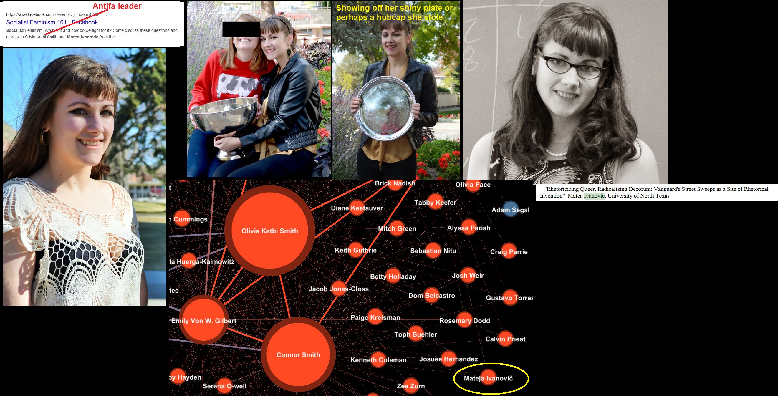 She's a DSA member who's allegedly connected on social media to the Von Gilbert / Smith crew in Portland's Antifa. She's affiliated with the Obama created AmeriCorps. She was part of a Facebook page called "Socialist Feminism 101" that Antifa leader Olivia Smith also ran. Ivanovic donated to radical Seattle City Councilwoman Kshama Sawant's campaign in 2019. Ivanovic is a masterdebater and was active at Idaho State on the debate team. She was also an assistant debate coach at the University of North Texas in the mid 2010s. Based on several speeches and lectures she's given, Ivanovic is probably an ethnic Serb. She's believed to now (2022) live in the Portland area. https://archive.vn/Z0QKY#selection-207.1893-207.1909