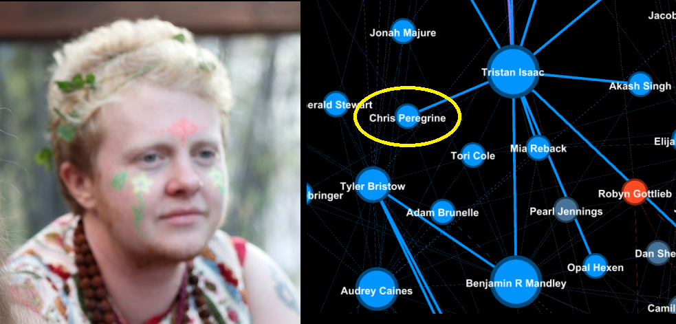 He's a Portland performance artist and tailor who's allegedly connected on social media to the Tristan Romine-Mann (Tristan Isaac) crew within Rose City Antifa. He was in a Portland psychedelic dance troupe / band known as Bacchus' Boogiers for a while. Based on limited photographic evidence it's possibly a F->M transsexual (or maybe M->F). Its presumed Etsy page has a lot of female clothes on it. https://archive.vn/vganl https://archive.vn/M4mqz