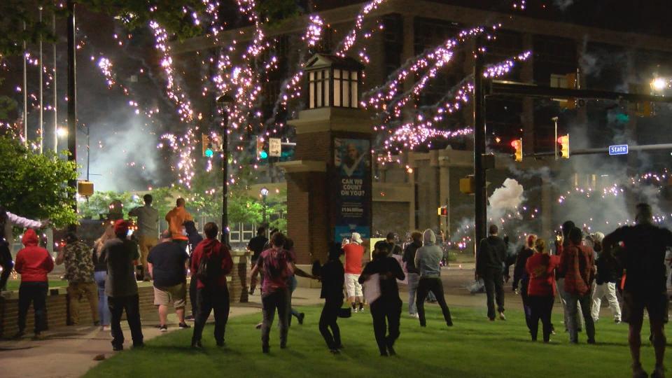 Just before 10 p.m., authorities learned that a protester riding a bicycle had a gun with them. Officers arrested Deandre Love, 23, and charged him with possession of a weapon at a protest. https://www.wsoctv.com/news/local/cmpd-protesters-clash-night-before-rnc-kicks-off-uptown/QI7YZNKFXNEE7AVQVG5PNR4RRU/