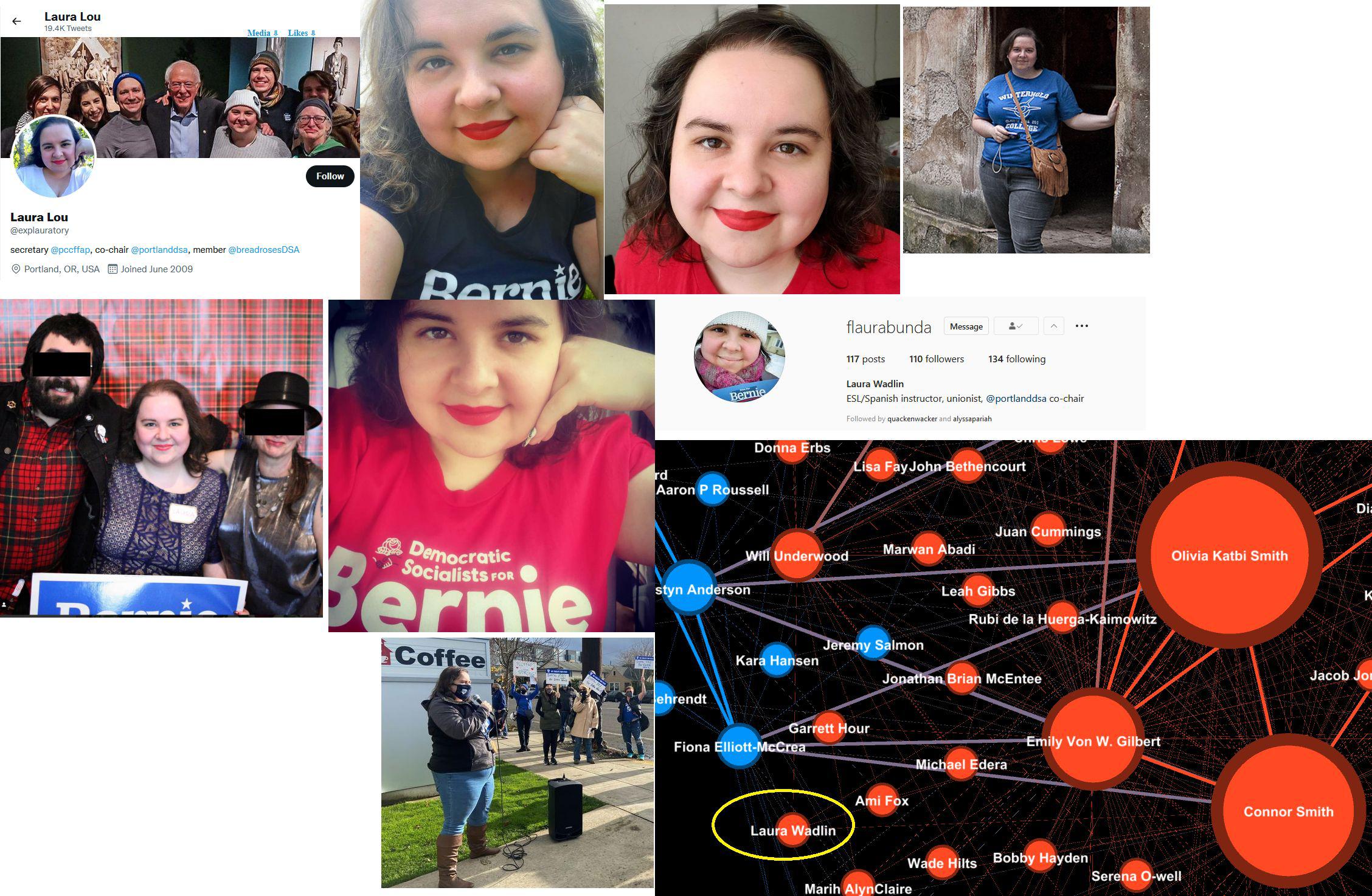 Laura Penny Wadlin (DOB: 05/26/91) is allegedly connected on social media to the Von Gilbert / Smith gang of Rose City Antifa. She was or is a co-chair of the Portland DSA. Based on her social media, she's a Bernie Belle. Wadlin works as a Spanish instructor at Portland Community College. She's the secretary for PCC Federation of Faculty and Academic Professionals. Wadlin waddled down to a DSA hosted May Day rally in 2021 and gave an on-air interview. DSA members at the rally refused on-air to condemn Antifa's methods. She seems to really be into nails as her Instagram page has dozens of photos of fancy painted nails. Wadlin holds a B.A. in anthropology and an M.A. in Teaching English to Speakers of Other Languages from Portland State. She has no major criminal convictions but has a 2019 Oregon state tax lien (don't socialists like taxes?). Wadlin lives with her parents in a nice house valued at over $700K near Emerald Estate Park in far northwest Portland. https://archive.vn/KRzNq https://archive.vn/FjMcv https://archive.vn/FjMcv#selection-253.0-253.12 https://archive.vn/X5GoZ#selection-1153.224-1153.236 https://archive.vn/wqZ5w