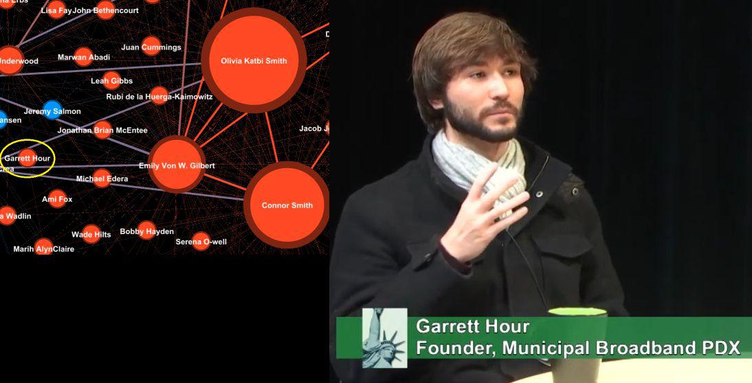He's allegedly connected on social media to the Von Gilbert / Smith crew of Rose City Antifa. He's also a member of Portland DSA. Hour was one of the organizers of the DSA supported blockade of the ICE building in Portland in 2018. He runs a non-profit known as Basic Income America although the group may be inactive as its website is down. Garrett advocated for a city run municipal broadband system in the late 2010s. https://archive.vn/MQjNx#selection-9547.0-9549.1 https://archive.vn/FEFLs#selection-2051.129-2051.141 https://archive.vn/Fj5ky https://www.youtube.com/watch?v=VNYDXsFB-1Y&ab_channel=PopulistDialogues