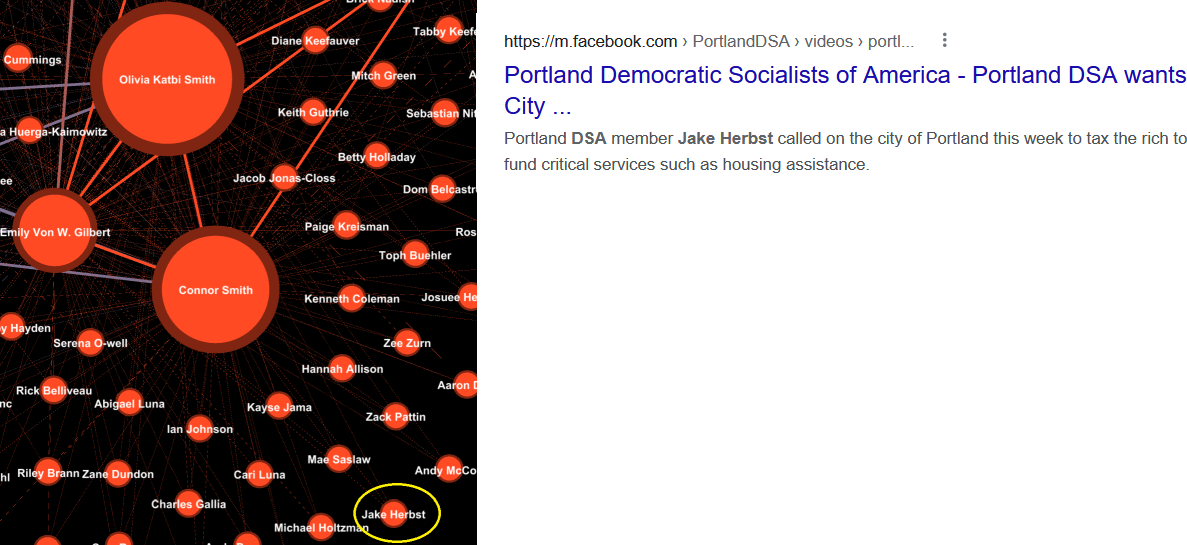 Herbst is allegedly connected on social media to the Von Gilbert / Smith gang of Rose City Antifa. He's a DSA member and is active in the Tax the Rich movement. Otherwise, not much is known about him.