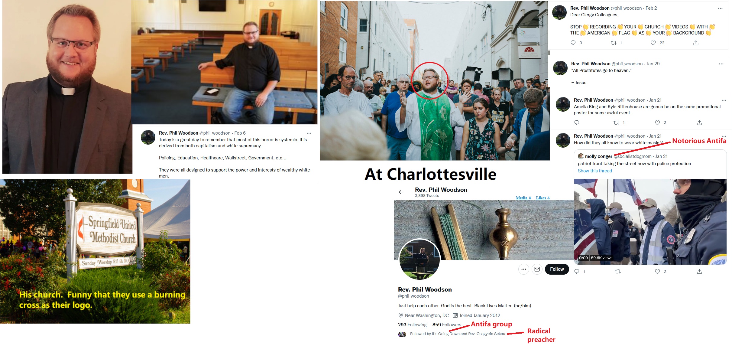 He's a left-wing Methodist minister who participated in the Unite the Right counter-protest in 2017. He was a pastor at the Charlottesville First United Methodist Church at the time. His Twitter feed is filled with far left-wing Tweets and re-Tweets, including re-Tweets of known Antifa such as Madeleine "Molly Conger" (https://antifawatch.net/ViewReport/37143815). He's currently the pastor at Springfield United Methodist Church in a D.C. suburb. https://archive.vn/0KV3s https://archive.vn/HxOYZ Has been assigned by the UMC.org as a pastor to be the Stilwell United Methodist Church in Stilwell, Kansas, United States as of May 2023. Now is Pastor at Stilwell, KS United Methodist Church in Stilwell, KS, USA. Been there for about a year. Started in mid-2023.