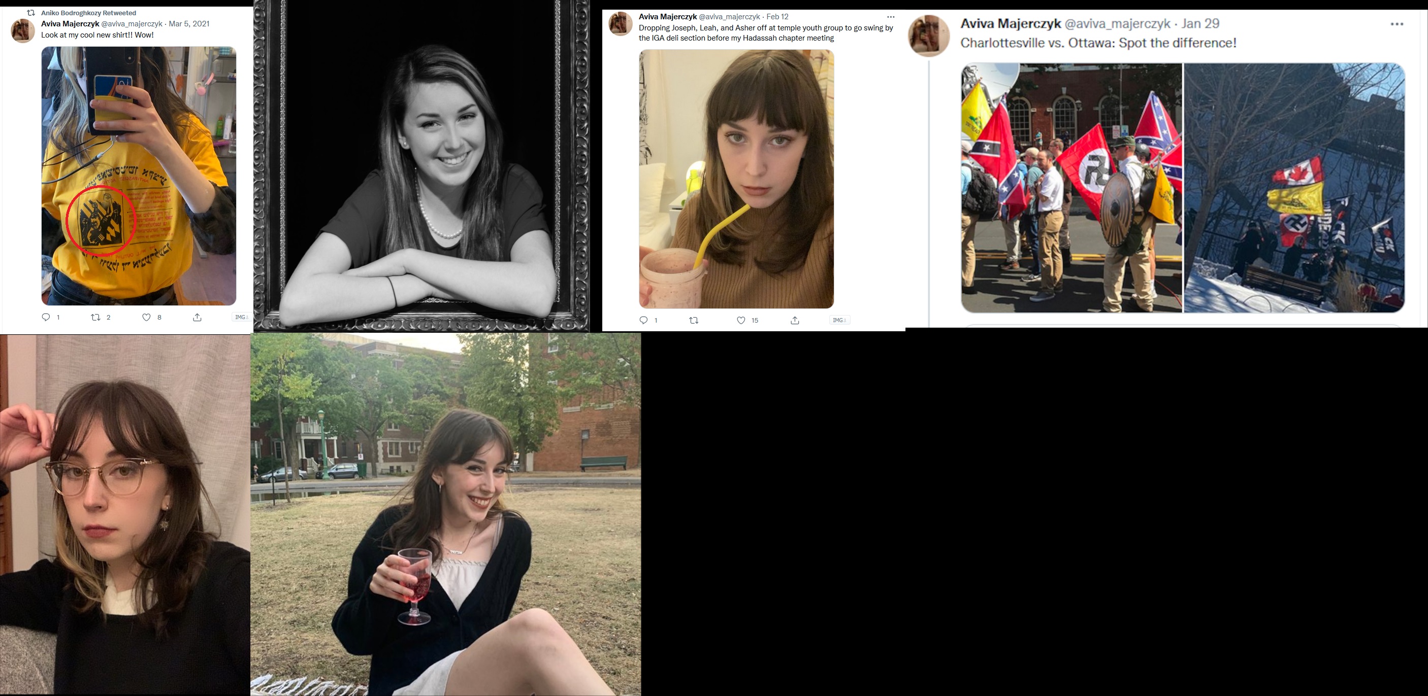 DOB: 05/05/99. She's left-wing UVA professor Aniko Bodroghkozy's daughter. Mom posted a picture of Aviva on Twitter proudly proclaiming Aviva as "always Antifascist with a side of Yiddish" and she's seen wearing an Antifa t-shirt with the downward pointing arrows. She currently lives in Montreal, Quebec but is from Charlottesville and is presumably an American citizen. Majerczyk is a student at Concordia University and writes for the student paper. https://web.archive.org/web/20220222152857/https://theconcordian.com/author/a_majerczyk/