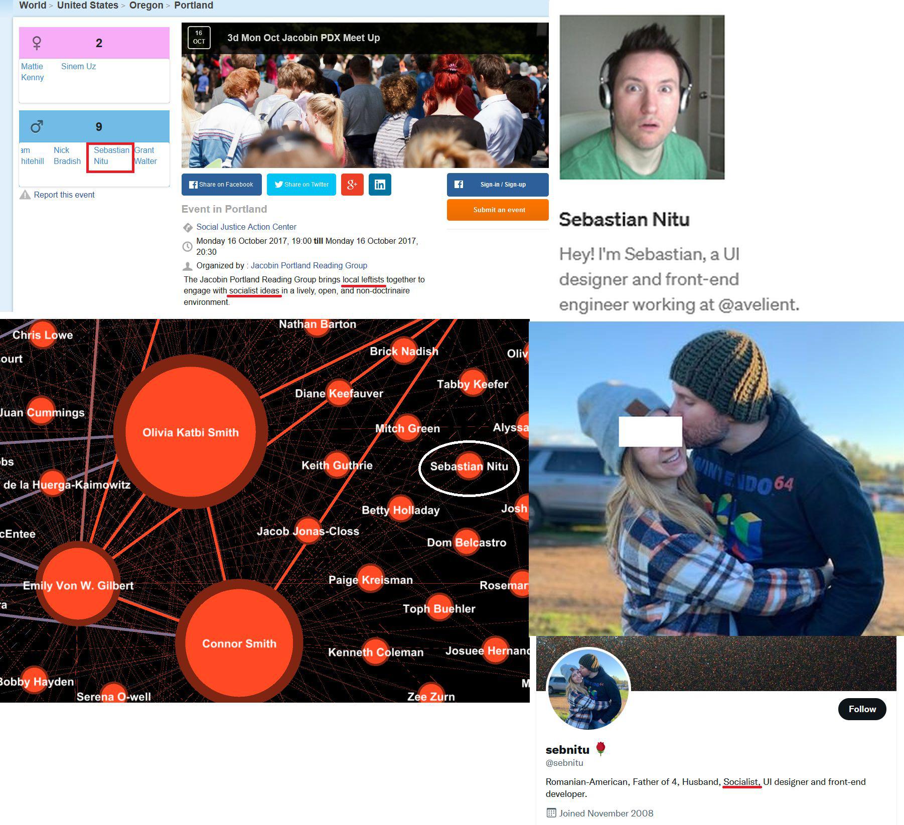 Sebastian "Seb" Nitu (DOB: 09/10/86) is another DSA member allegedly connected to the Von Gilbert/Smith Antifa crew. Despite his affiliations, he doesn't have any arrests for serious crimes, only traffic violations. He works as a graphics designer/software developer. Nitu is a member of the Portland Jacobin group which is a group of self-styled "intellectuals" who get together and discuss left-wing ideas. He's a Romanian-American who was raised Pentecostal but who's now an atheist. Nitu lives with his wife and four kids in a nice middle-class house in Vancouver, Washington. https://archive.vn/yWiDc#selection-10193.0-10193.14 https://archive.vn/WAAif https://issuu.com/chris.maier/docs/sebnitu_portfolio_fast_ https://www.linkedin.com/in/sebnitu