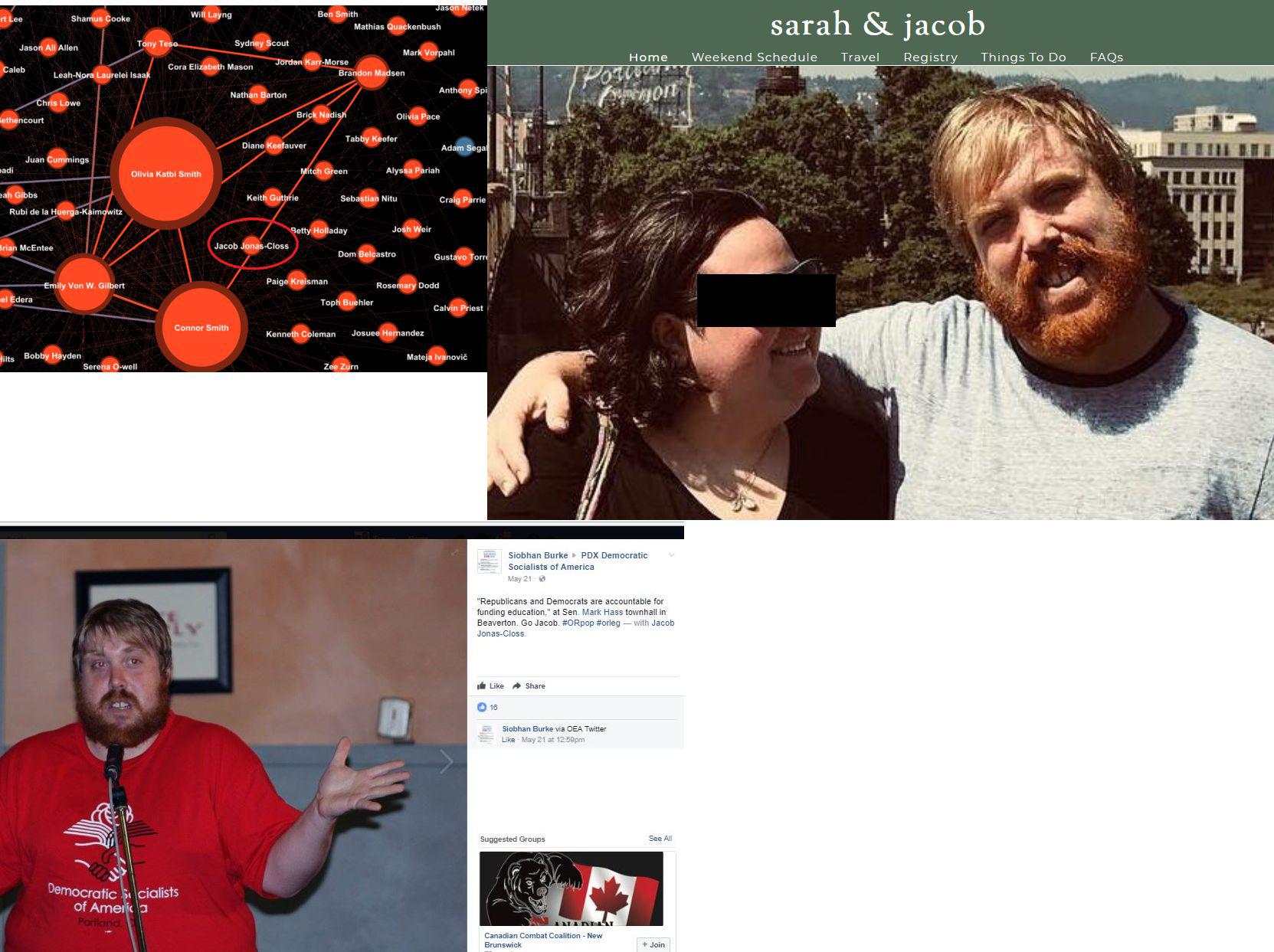 He's a Portland DSA member and probably Antifa too. He has social media connections to the Smith and Von Gilbert crew of Rose City Antifa. Jonas-Closs worked as a middle school English teacher for the Evergreen district in Vancouver. He was elected to the Board of Directors of the Portland Association of Teachers in 2021 so he may have moved to the Portland district. He's licensed as an adult companion and may have worked in a low level position in the mental healthcare industry in the past. Jonas-Closs claims to enjoy hiking but based on his photos, he must be referring to the trek from the couch to the fridge. He married his three hundred pound wife, Sarah in 2019 but it isn't clear she's part of Rose City Antifa. The couple own a $400K house in NE Portland so I assume Mrs. Jonas-Closs works in a field more lucrative than teaching. https://archive.vn/aYYIR https://archive.vn/49Uxf https://archive.vn/phcOM https://archive.vn/i9Iyf https://prezi.com/wzlzg36de-iw/welcome-to-my-class/