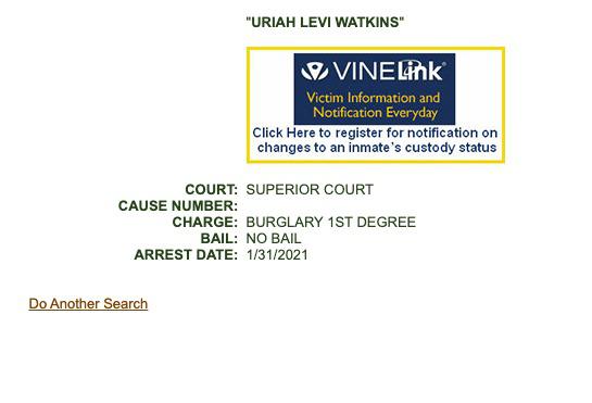 The name of his victim is the same name of the victim for all the other suspects arrested for Red Lion take-over Defendant (WIP) ROBINSON, JOSEPH MATTHEW Events and Hearings 02/01/2021 Preliminary Appearance Judicial Officer Dixon, James J Hearing Time 2:30 PM Thurston Inmates released 2/1 Name Release Reason Docket Number EMMA CLAIRE DEITZ BAIL OR BOND POSTED 2/1/2021 9:36:51 PM 2110009734 KELLY GEORGE EATON PERSONAL RECOGNIZANCE 2/1/2021 10:58:28 AM COURTNEY LORRAINE HALL BAIL OR BOND POSTED 2/1/2021 9:34:47 PM 2110009934 JEVARRI IAN HARSHAW PERSONAL RECOGNIZANCE 2/1/2021 6:39:24 PM 21DV0202 ANDREA LOREN NELSON SENTENCE COMPLETED 2/1/2021 6:01:44 AM 1810172034 NIKO LEE PACHOLKE PERSONAL RECOGNIZANCE 2/1/2021 6:39:46 PM 2110010434 JOSEPH MATTHEW ROBINSON PERSONAL RECOGNIZANCE 2/1/2021 6:40:08 PM 2110010534 URIAH LEVI WATKINS PERSONAL RECOGNIZANCE 2/1/2021 6:40:31 PM 2110010834 KINDRA RAEANNE YOUCKTON PERSONAL RECOGNIZANCE 2/1/2021 6:41:36 PM 1A0179580