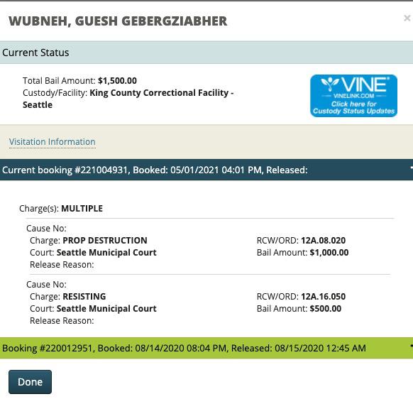 https://spdblotter.seattle.gov/2021/05/01/fourteen-arrested-during-saturday-marches/ Guesh Gebergziabher Wubneh of the Seattle Education Association for property destruction and resisting. Was a Bilingual Instructors assistant in 2018 (potentially still is) at a #Seattle Elementary school.