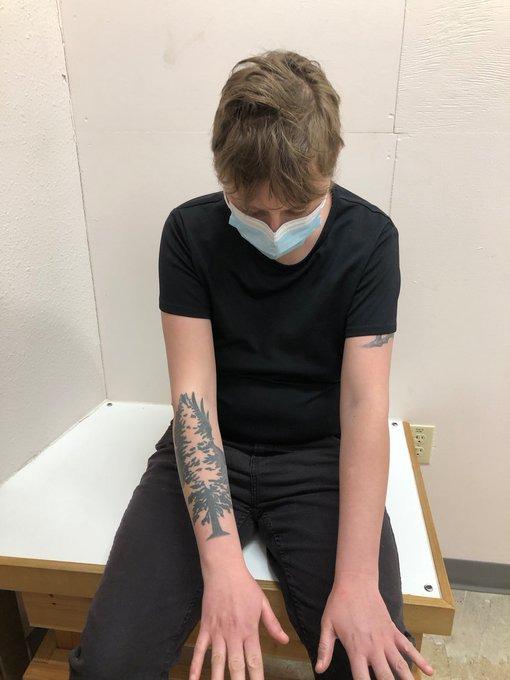 https://twitter.com/MrAndyNgo/status/1385329712944320515 Olympia, Wash.: Far-left militants in black bloc were arrested at a violent BLM-Antifa protest on 16 April where they marched around vandalizing property. #antifa Breanna Killbourne, 21, started crying during her arrest & was carrying a knife Helen Cultee, 21 Simeon Rivers, 23