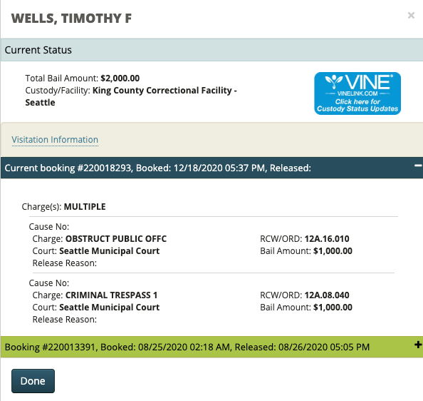 Chaz 2.0 Seattle - Charge: CRIM TRES 2 Charge: OBSTRUCT https://spdblotter.seattle.gov/2020/12/18/police-assist-seattle-parks-department-in-cal-anderson-clean-up-live-updates/