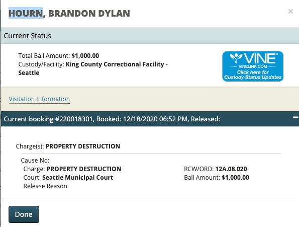 Tyler Stubbs-Hahn - Criminal Trespass and Resisting arrest Chaz 2.0 Seattle https://spdblotter.seattle.gov/2020/12/18/police-assist-seattle-parks-department-in-cal-anderson-clean-up-live-updates/