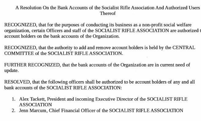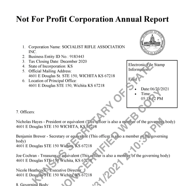 A secretary of the socialist rifle association. The address listed in a corporate mailing address, not a physical one. please edit if needed mods