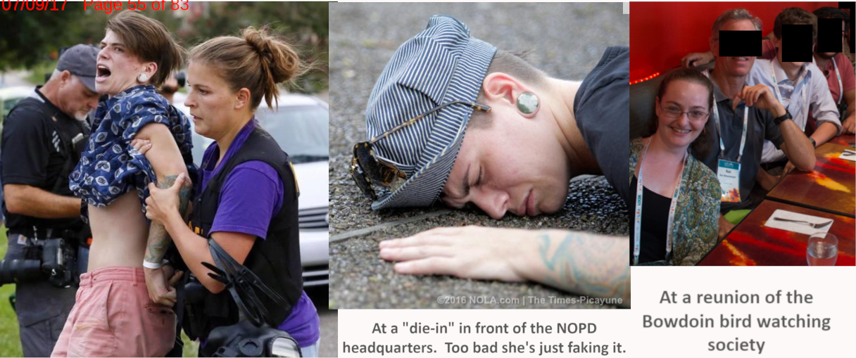 Samantha "Sami" Kay Nichols (Born Aug. '91) traveled from New Orleans to Baton Rouge with her friend Raae Pollard to protest the death of an armed criminal at the hands of police. She was arrested while trespassing on a Baton Rogue resident's yard. The arresting officer yelled at her, "Trashy bitch, go back to California!" Nichols was charged with resisting arrest although the charge may have been dropped. Nichols was later one of the plaintiffs in a lawsuit that scored a $1.17 mil. Jackpot. She doesn't look too feminine in some photos and could be a tranny although, in the words of the police officer, she may be just a "trashy bitch". She attended Bowdoin College, a prestigious liberal arts college in Maine. She's probably still lives in New Orleans although some sources have her in Knotts Island, NC. https://web.archive.org/web/20240330114744/https://clearinghouse.net/doc/97005/ (pp. 54-57)