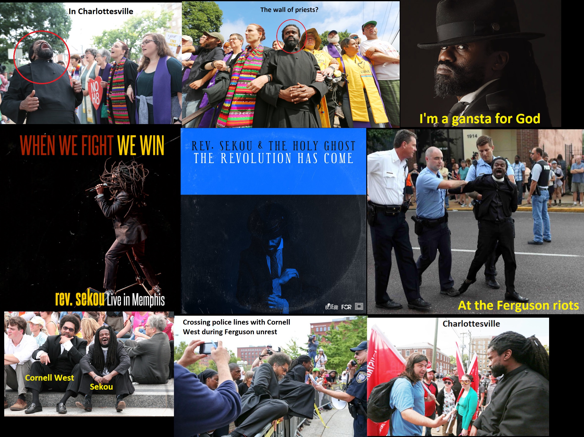 Rev. Osagyefo Uhuru Sekou (DOB: 01/22/71) was one of the organizers of the Charlottesville counter protest. Sekou claims to have spent six weeks training Charlottesville clergy prior to the Unite the Right rally. He also claims to have been arrested multiple times during the Ferguson riots although he doesn't appear to have been convicted. He's a preacher who runs the Deep Abiding Love Project and claims to have trained over 10,000 activists. In addition to saving souls for Jebus, he runs a record label known as Zent Records and fronts a band called "Rev Sekou and the Freedom Fighters". He has a BA in Liberal Studies with a concentration in Continental Philosophy and Creative Writing from The New School in New York City and is a PhD candidate in Religious Studies at Goldsmiths University in London. The name he uses appears to be his legal name but it's doubtful it's his birth name. He's from a very small town in rural Arkansas. The Rev. lives in a respectable rental house in St. Louis. https://archive.vn/VN7Cw, https://archive.vn/luI5j, https://archive.vn/yp0Xq https://www.revsekou.com/ https://www.youtube.com/watch?v=LZYPwNQ_r7w&ab_channel=OsagyefoSekou