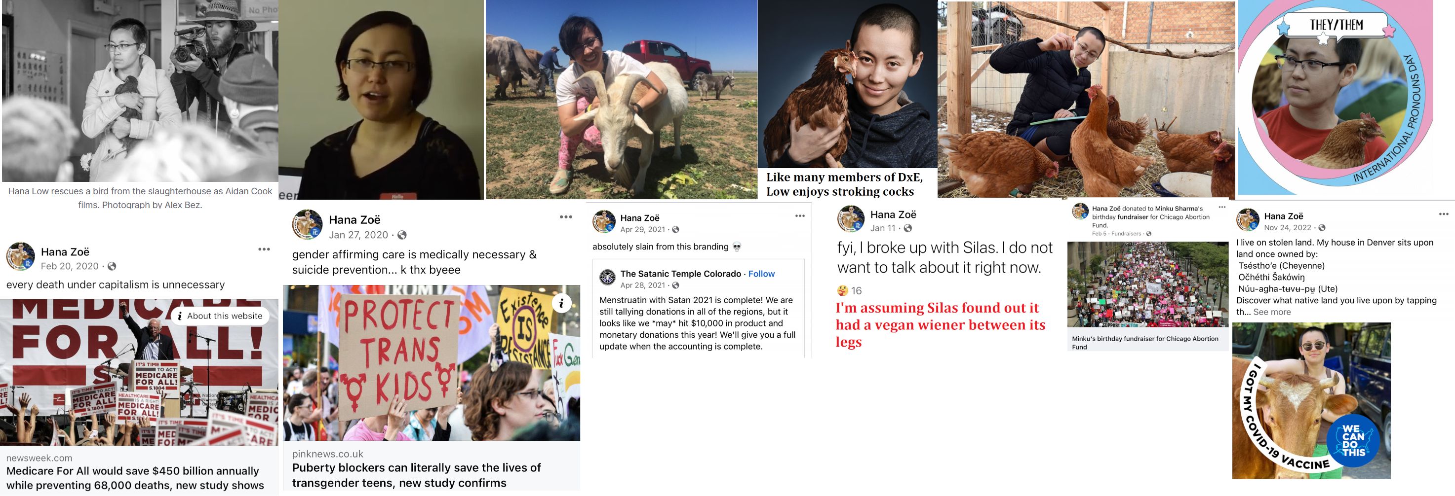 Hana L. Low, aka Hana Zoe (DOB: 04/27/89) is a tranny, queer, non-binary member of the radical animal rights group Direct Action Everywhere (DxE). Low has participated in at least one group animal theft sponsored by DxE although it doesn't have a criminal record. Low also disrupted the Denver Burger Battle with its DxE friends and described the event as a $70 / ticket event where people consume bourgeois flesh patties. Low has supported sex-change surgery for children on her Facebook account and supports socialized medicine. It's been in several relationships with biological men. Low's family is originally from southern China. It's another radical alum of the University of Colorado and works as a visiting nurse in Denver. Low goes by Hana Zoe on some social media accounts, including Facebook. It lives in what could best be described as a nice shack in the Perl Mack neighborhood of Denver. https://archive.ph/5zSYN https://archive.ph/89ZS9 https://archive.ph/8Ff4Y https://www.youtube.com/watch?v=QXTUEWCw0Lg&ab_channel=DirectActionEverywhere-DxE https://www.linkedin.com/in/hanalow
