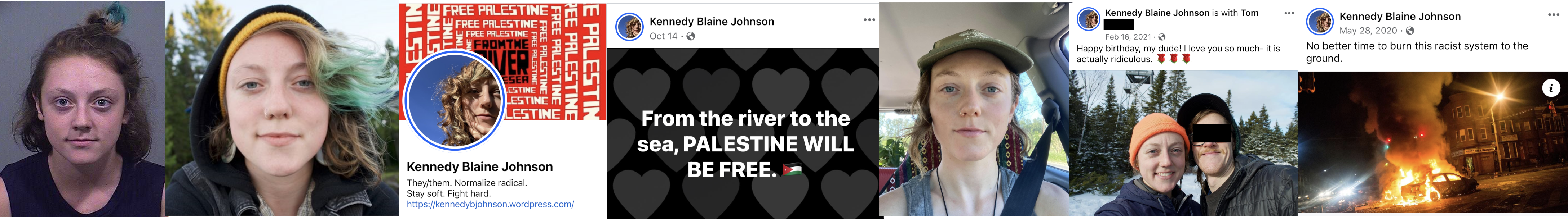Kennedy Blaine Johnson (born May '94) was arrested at a 2016 BLM protest in Portland, Maine and charged with obstructing a roadway. She's very anti-Semitic and jumped on the Palestinian bandwagon years ago. During the George Floyd riots, she advocated burning the "racist system" to the ground. Johnson claims to be queer but lives with a man she calls her "dude". She has a BA degree but worked for years as a landscaping crew leader. She's now the Restorative Practice and Youth Justice Coordinator at the Restorative Justice Institute. Johnson lives in an apartment in the West End of Portland with her dude. https://archive.ph/ZIYLE#selection-2561.0-2561.15 https://archive.ph/eE0Q2 https://kennedybjohnson.wordpress.com/