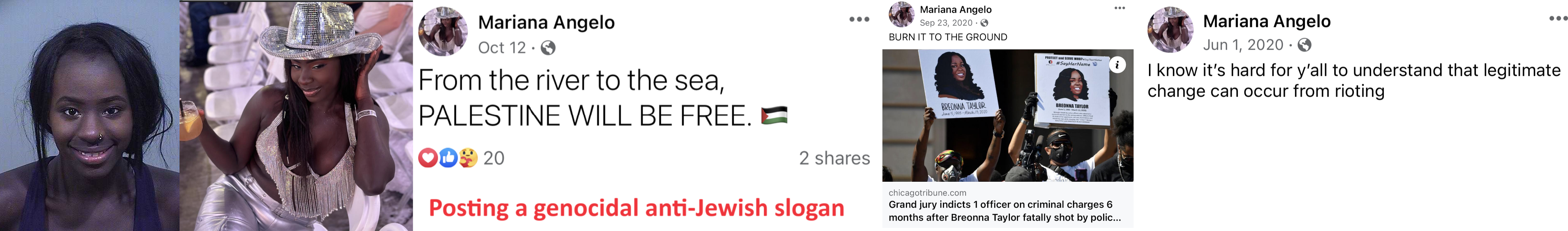 Mariana Atim Angelo (born Apr. '96) was arrested at a BLM protest in Portland, Maine in 2016 and was charged with obstructing a roadway. She posted inflammatory statements on Facebook during the George Floyd rioting cycle in 2020. Angelo seems to have been active in local protests but unlike the other Portland, Portland Maine didn't have riots. She lives in Portland. https://archive.ph/ZIYLE#selection-2549.0-2549.14