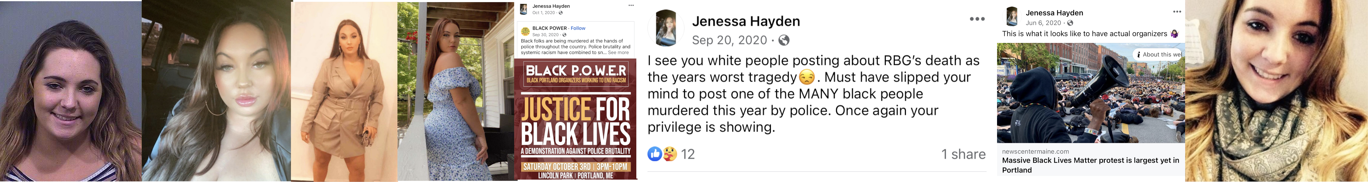 Jenessa Marie Hayden (born Jul '93) was arrested at a BLM protest in Portland, Maine in 2016. She was charged with obstructing a public way. She was also active in BLM protests after George's death although Portland Maine didn't have any riots with mass arrests. She works as a bartender and finance assistant. Hayden lives in a trashy duplex in the Portland suburb of Westbrook. https://archive.ph/ZIYLE#selection-2627.0-2627.14 https://www.linkedin.com/in/jenessa-hayden-84bb198a