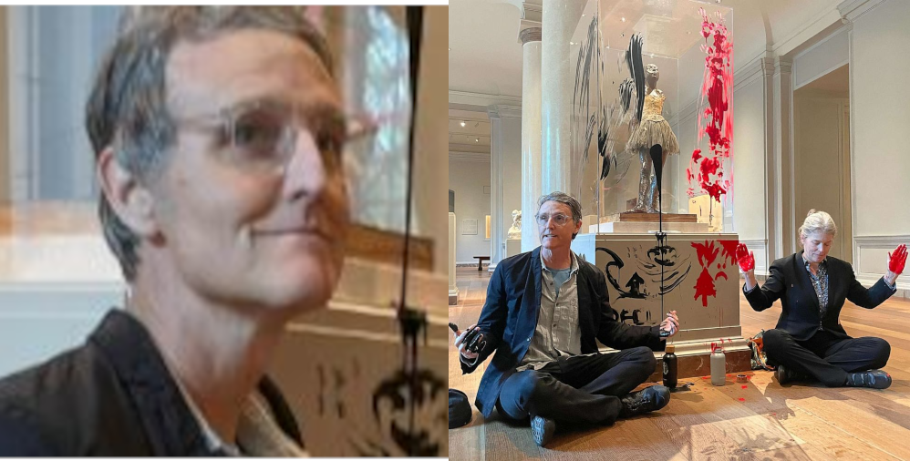 He's a radical environmentalist who defaced a Degas sculpture at the National Gallery of Art in April 2023. His co-conspirator was Joanna Smith and both belonged to the radical environmental group Declare Emergency. Their left-wing buddies refer to them as the "Degas Two" and held a die-in on the steps of the Met to protest their incarceration. https://archive.ph/a53er