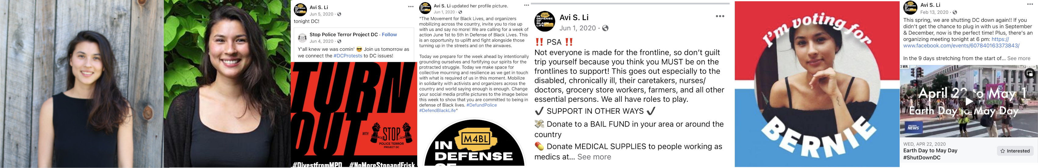 Avital "Avi" S. Li (born Sep. '95) was affiliated with Shutdown DC and received a social media call-out for her work by one of the group's leaders. She used social media to promote George Floyd era riots in D.C. and probably attended a few. She's a Bernie Belle and may have campaigned for Sanders. She works for an organic farming institute in Asheville and claims to be enamored with shrooms. She was living in DC at the time of Shutdown DC's disruptions but moved to Asheville in 2021. Li may be a Candian national and attended McGill University in Montreal. It's unclear how tight she is with Asheville's Antifa cell. Li moved to Asheville after the pandemic and lives in a fairly nice house with a bunch of seemingly unrelated housemates in the hills near Grove Park. https://archive.ph/t7vZi#selection-923.0-923.9 https://archive.ph/jZldx#selection-1513.0-1513.19 https://archive.ph/vqQR4 https://www.linkedin.com/in/avital-li