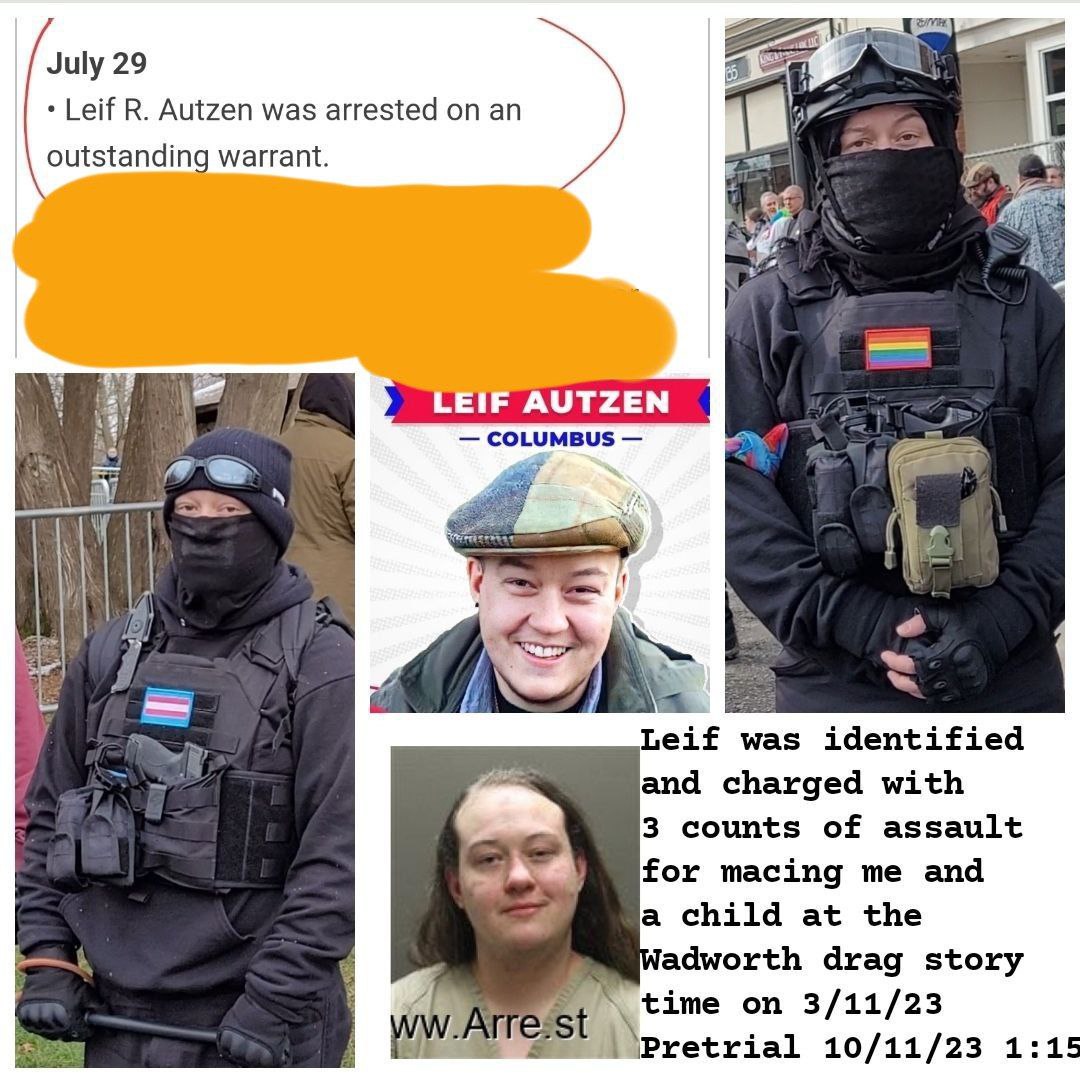 "Leif" Richard Autzen (DOB 01/18/93) is a FTM Tranny who previously went by Kaleigh Rebecca Autzen. Leif has a hobby of larping as a security guard and attending Drag Queen Grooming Hour events (Columbus in December 2022, Wadsworth in March 2023, & Chardon in April 2023) dressed in full black bloc and wielding an AR-15 that's almost as big as she is. On March 11th 2023, Leif travelled over 100 miles to Wadsworth Ohio to defend pedophilia at an event that was protested by over 200 locals. At said event, she pepper sprayed multiple people, including a child (@ 0:30 youtube.com/watch?v=_Iun_Sl_cjs), and was charged with assault. She was arrested on July 29th 2023 in Mount Vernon on a warrant relating to this incident. Leif has past residences in Cincinnati, as well as Columbus (43229) during the time of the Wadsworth assault, however, recent court records show that she currently resides in Fredericktown, Ohio (43019). Court records relating to this incident can be found by searching "Leif Autzen" here: fcdcfcjs.co.franklin.oh.us/CaseInformationOnline/ Welcome to the spotlight "Leif"! It seems that this tranny is running a gofundme for their legal fees (https://www.gofundme.com/f/qg2wt-drag-defense-legal-fees?member=28511391&sharetype=teams&utm_campaign=p_na+share-sheet&utm_medium=copy_link&utm_source=customer&fbclid=PAAaa3nR_DOlpIki_OMAW5AnWO9MPs1YKRJ8r4f13eSjGG3v0XpVgOQZfnB2s_aem_AcZ-2M3poyImgBiZJa1P_xHIbR7dgOUkUzA4_C-bQXs6prumKNBjW_fvhKg8SbXQKoM). This fundraiser may be reported here: https://www.gofundme.com/contact/suggest/fraud New instagram they made to crowdfund for their legal (or genital mutilation) expenses, @justice4lieif Was the former spokesperson for the local party for socilaism and liberation (PSL) chapter. Leif is open about her involvement with antifa, including organizing actions, luring youth, and posing meanacingly with firearms in her bedroom. She has adopted a pirate persona to generate more personal attention. Her website leifautzen.com shows her violently attacking someone. https://www.tiktok.com/@captainleif161?fbclid=PAAaZeeyKKuzm-95MeSxymTaVnkQkY1X80bV6pVHL0X3z5DW-fLAp-njZp1Cs https://www.instagram.com/captainleif161?igsh=MXJhd3FoOHNoNmNnbA== update https://spotify.link/imFNctRpqHb Leif appeared on a 2+ hour podcast interview where she gloats about her violent crimes at protests and threatens to do more. She is raging narcissist using her antifa status to get attention, fundraise for legal and living expenses, and as an excuse to act out her violent communist fantasies.