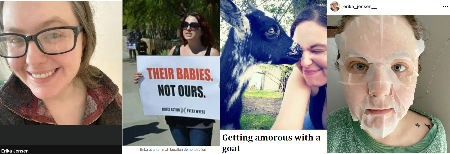 She's a member of and former organizer for the radical animal rights group Direct Action Everywhere (DxE) in Cleveland. She also participates in events hosted by DxE's Chicago chapter. Jensen studied psychology at Penn State and claims to suffer from debilitating social anxiety. Her last known address was in Cleveland. https://archive.ph/snKgB https://archive.ph/nQQdh https://archive.ph/Mhgld
