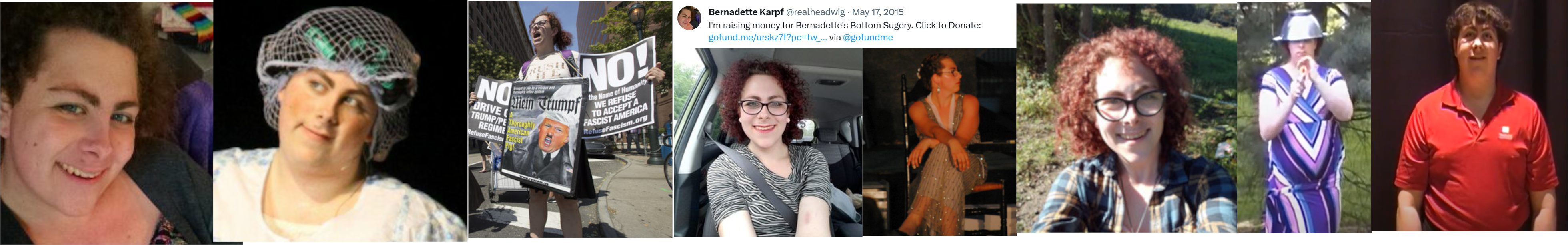 Bernadette Christopher Karpf, nee Christopher Morell, (DOB: 01/25/96) is a tranny that protested with the Revcom group Refuse Fascism at a 2017 protest in Philly. Karpf was alleged to have participated in the violent Charlottesville UTR counter protest in 2017. It's a grifter who set up a GoFundMe page so it could have its penis removed (I would do it for free, but it might be more painful). Karpf has gone by "David Karpf" in the past. It has a B.A. in theater from Temple University. It's held mostly crappy jobs unrelated to theater and may work in sales for a dance wear company. Its weight seems to fluctuate a lot. Recent photos show Karpf looking like a halfway passable, if fugly, woman. I guess the estrogen finally kicked in. Karpf's last known address was in north Philly. https://archive.ph/5iMCD https://archive.ph/OB1a1#selection-4805.1-4805.59 https://web.archive.org/web/20160912193531/http://bernadettekarpf.weebly.com:80/ https://www.linkedin.com/in/bernadettekarpf