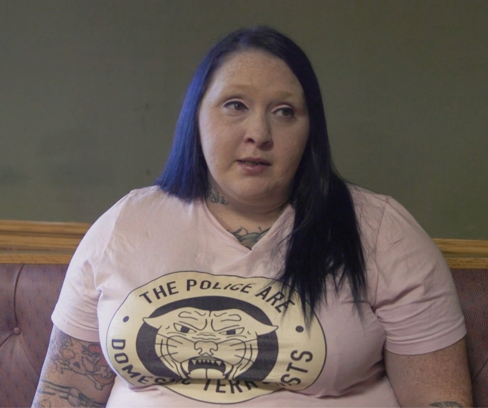 Erica Hardwick was once a member of the National Alliance, a pro-White organization. She later flipped to antifa, handing the entire National Alliance membership to Daryle Lamont Jenkins' One People's Project (OPP). According to a documentary about OPP called We Don't Walk in Fear, Hardwick was room mates with Jenkins after she left the National Alliance and is an affiliate of his. She can be seen in the documentary wearing a shirt that says "The Police Are Domestic Terrorists." Source: https://vimeo.com/801352878