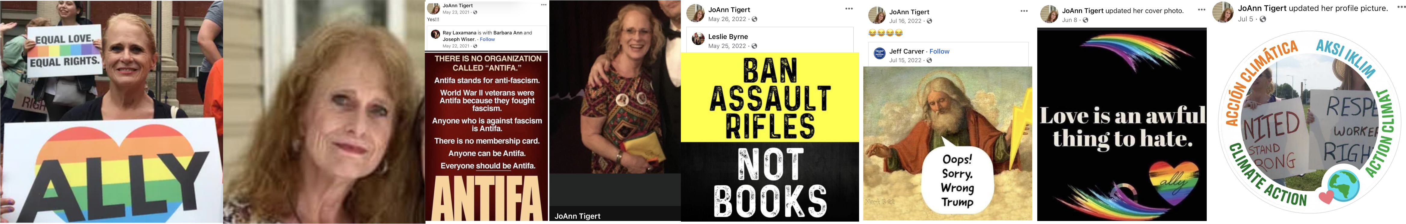 JoAnn Cunningham Tigert (born Oct. '60) participated in the violent counter-protest to the Charlottesville Unite the Right rally. She said in an interview that Unite the Right was the most disgusting thing she ever saw next to the Jan. 6th riot. Tigert participated in a transgender rally in Staunton, Virginia in July 2017. She's a retired teacher and an elder at First Presbyterian Church of Staunton. Tigert lives in a dumpy house in Staunton with lots of political signs in the yard. https://archive.ph/zgtlI#selection-6599.18-6599.30 https://archive.ph/Nqo4T https://1stpres-staunton.org/wp-content/uploads/22-03-06-1.pdf