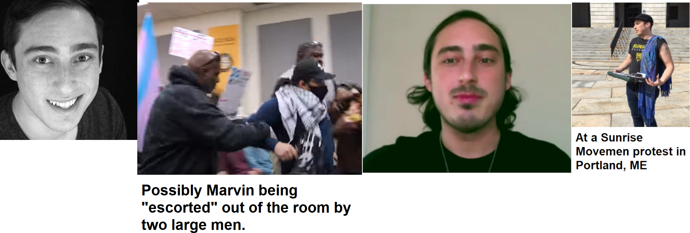 Anthony J. Marvin (born Feb. '93) was arrested at a pro-life event on the campus of Virginia Commonwealth University in March 2023 and charged with disorderly conduct. One of the protesters carried an anarchist Iron Front flag. Marvin claimed one of the speaker's bodyguards started the fight. He may be the masked guy in the video that swings a bullhorn at a person recording the event and is then manhandled by two bodyguards. He's from Maine originally and was part of the Renew Maine Alliance which had grandiose plans to solve mass unemployment, racial injustice, the COVID pandemic, indigenous tribal sovereignty issues and global warming. He was also a coordinator for the radical environmental group the Sunrise Movement. He works as a web developer and has an associate's degree from a community college in Maine. He claims to have $20K in student debt so it must have been an expensive community college. Marvin lives with a woman who's presumably his wife or girlfriend in a nice little vintage town home in Richmond's Union Hill neighborhood. https://archive.ph/cXIDj https://archive.ph/KcpbS https://archive.ph/lLPvo https://archive.ph/VPz2n https://archive.ph/Fyrga https://youtu.be/ozpScjBQ93k (The protest)