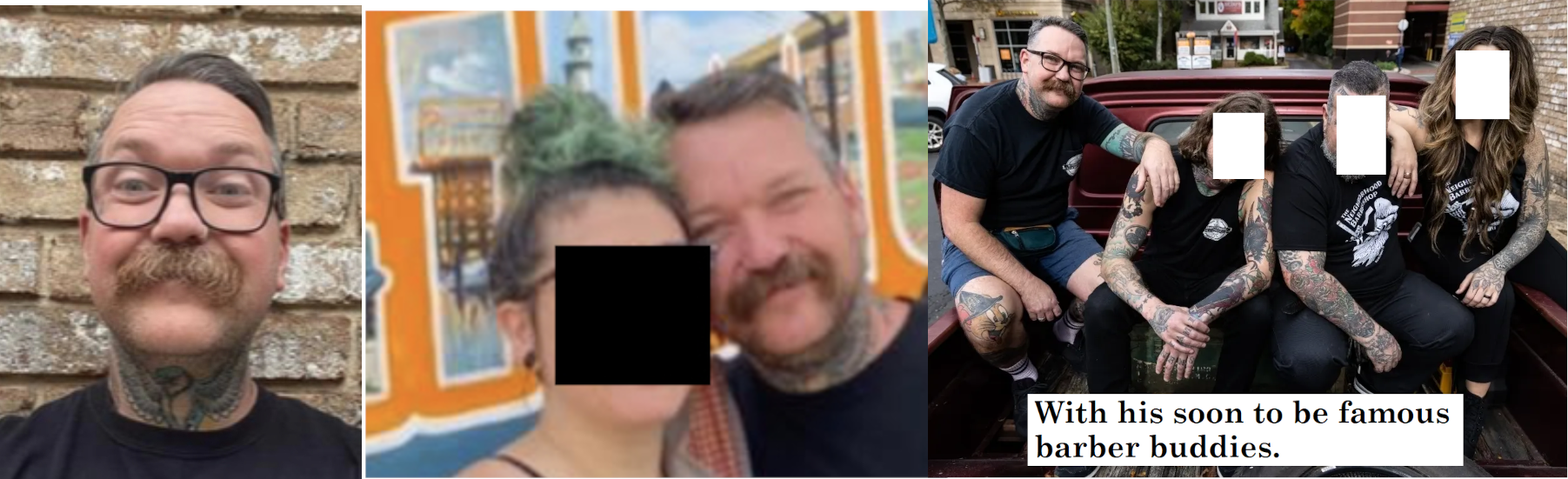 Dustin Leeson Foley (born Jul. '82) took his 15-year-old daughter to a George Floyd riot in DC in 2020. The pair thoughtfully brought along peanut butter and jelly sandwiches and water to distribute to rioters. His daughter became ill from the tear gas deployed to control the mob of rioters. Foley is a former cop, but he later sued several law enforcement agencies with the help of the ACLU. Foley works as a barber. As of 2023, Foley and several barber buddies were peddling their asses in Hollywood, trying to convince producers to launch a reality show based on their barbershop. I hope someone else is handling the business aspects of the show because Foley had a 2013 bankruptcy. He lives with his wife and daughter in an apartment in Falls Church. https://web.archive.org/web/20230810202120/https://www.courthousenews.com/wp-content/uploads/2021/06/BLMcomplaint.pdf (pp 37-40) https://archive.ph/cbWnk