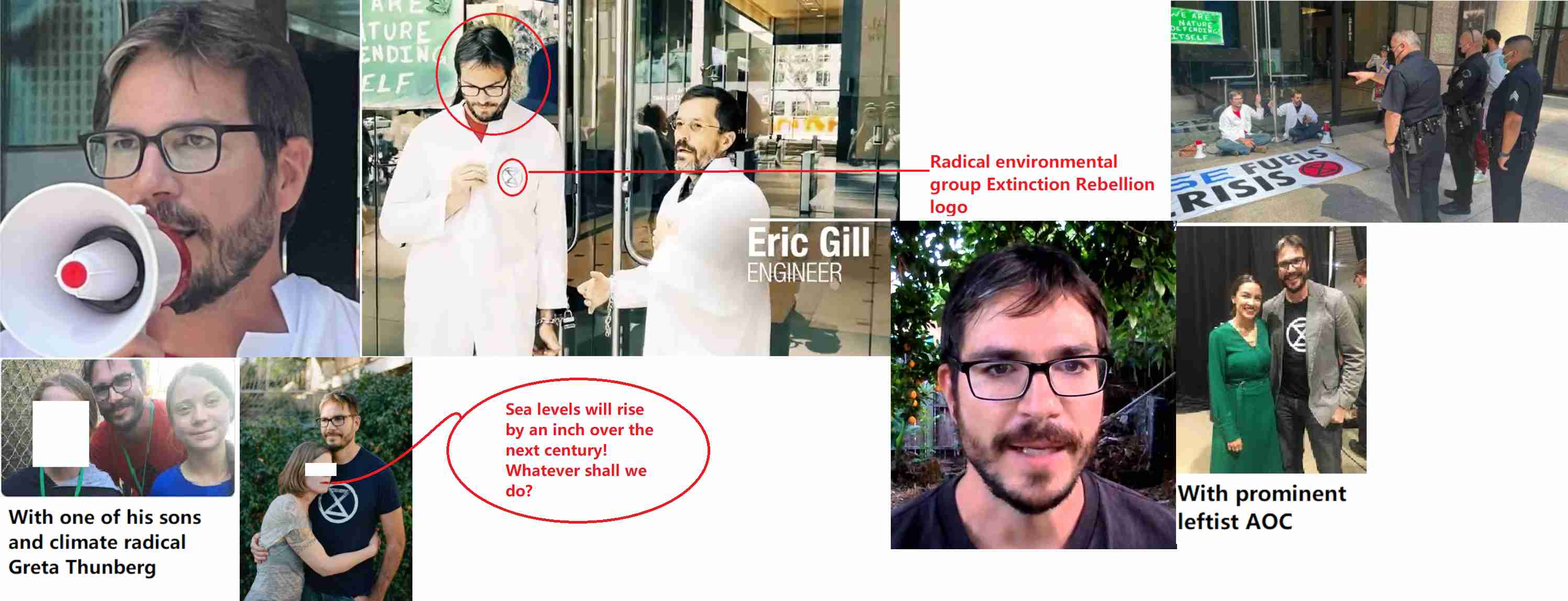 Peter Michael Kalmus is a NASA data scientist and political radical associated with the radical environmental groups Extinction Rebellion and Scientist Rebellion. He was arrested in April 2022 for locking himself to the door of a J.P. Morgan Chase bank branch. Kalmus works at NASA's jet propulsion laboratory in La Canada. He claims to live on 1/10th the fossil fuels the average American uses which makes his life more satisfying and meaningful. He refuses to fly on planes because they emit too much greenhouse gasses. Nevertheless, he's reported to be beside himself because he emits more greenhouse gasses than radical environmentalist Bill Nye the Science Guy (jk). He's affiliated with the Movement for a People's Party, a group that's linked to Bernie Sanders. Kalmus supports climate strikes by school children and his two kids regularly participate in strikes sponsored by the radical environmental group Fridays for Future. Kalmus lives with his family in a fairly nice house in Altadena near Pasadena that doesn't have solar panels on the roof! There was also a fossil fuel burning, gas guzzling pickup parked in the driveway, but it could have been a contractor's. We're not sure he's really living up to his claim of using 1/10th the average amount of fossil fuels. https://en.wikipedia.org/wiki/Peter_Kalmus_(climate_scientist) https://archive.ph/SjI72 https://archive.ph/MuXVR https://archive.ph/npyI1