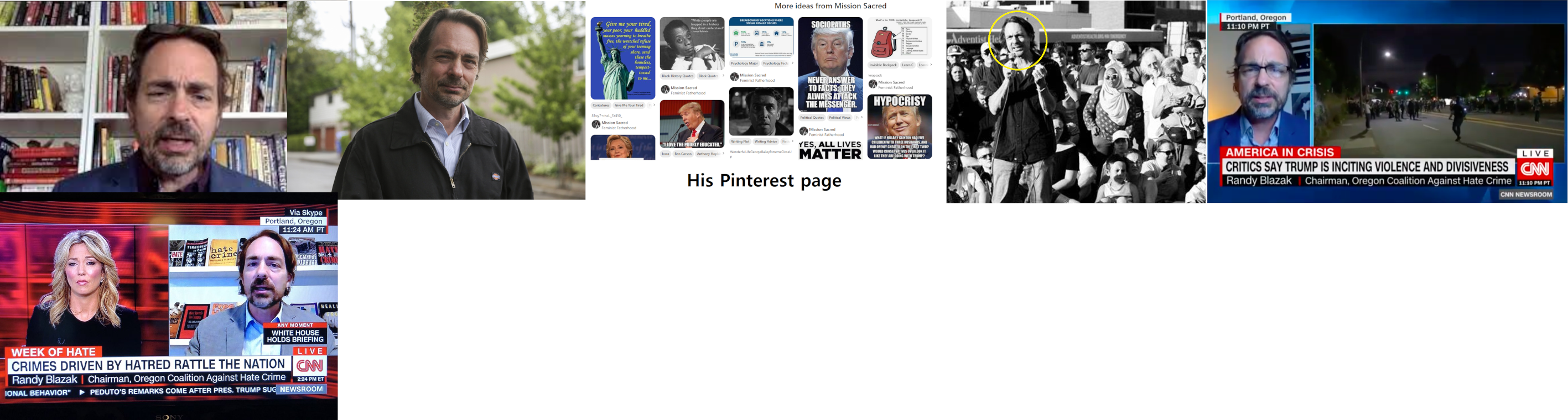 Randy Evan Blazak (DOB: 02/20/64) is a University of Oregon sociology professor who's head of the Oregon Coalition Against Hate Crimes. His areas of study are skinheads and hate groups. He claims to be antifascist "to the core" although he has expressed doubts about some Antifa tactics and said it feels good to punch a "Nazi" in the nose but may not win the hearts and minds of the people. He also claimed in a CNN interview that video games are training white supremist shooters. Blazak also works as a consultant and teaches classes such as "Interrupting Injustice" and "Making Black Lives Matter". He's written several books on hate groups. Even though he teaches in Eugene, he lives in a dumpy house in northeast Portland and presumably makes the long drive several times a week. https://archive.ph/MnWfV#selection-2063.0-2063.12 https://www.youtube.com/watch?v=K4RPbxQjXkE&ab_channel=blazak https://www.youtube.com/watch?v=huAR9FPVa2E&ab_channel=TRTWorld https://twitter.com/TimJGraham/status/1394723680186507271 https://www.randyblazak.com/ https://www.linkedin.com/in/randy-blazak-7180b52