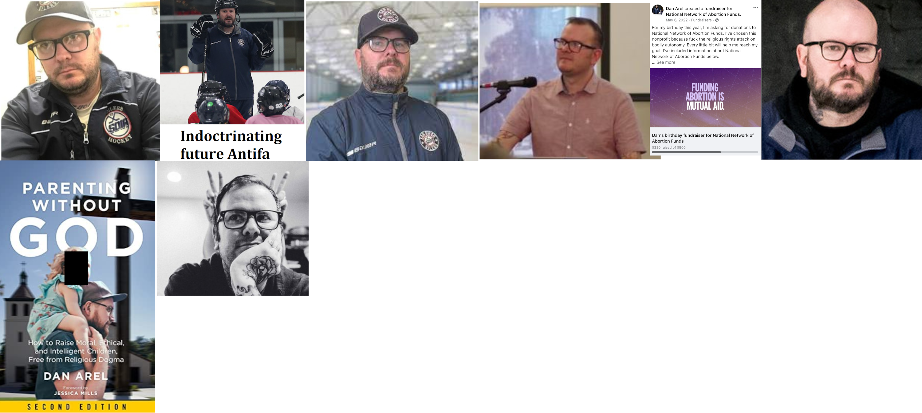 He's a self-proclaimed journalist who contributes to the anarchist news and PR firm Agency. He wrote an article claiming that labeling Antifa as a terrorist group is an attempt to establish fascism in the U.S. He also wrote two books called "Parenting Without God" and "The Secular Activist". He's also a youth hockey coach for a San Diego club and he gives private lessons on the side. For his 2022 birthday, he held a fundraiser to raise money for abortions. Arel lives in the San Diego area and works as a labor activist. He has a large tat of a rose on his left hand and another tat on his right neck which he sometimes hides with a neck beard. https://archive.ph/VhqSp https://archive.ph/zMY2J https://archive.ph/wLIlb https://www.danarel.com/ https://www.stitcher.com/show/danthropology
