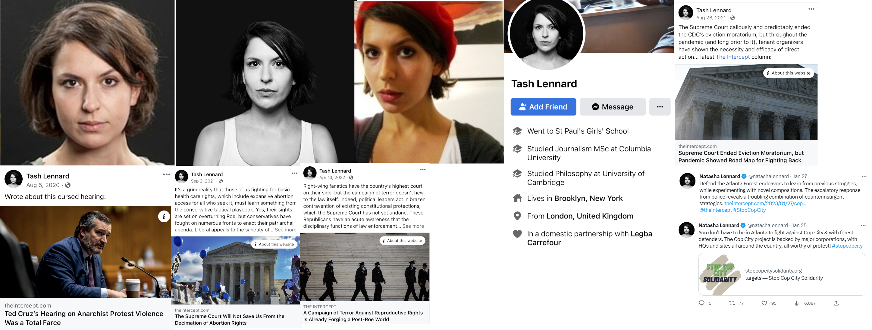Natasha "Tash" Lennard is a journalist and contributor to the anarchist news and PR firm Agency. Lennard was arrested at a Brooklyn Bridge Occupy protest in the early 2010s while working for the New York Times. She wrote a book titled, "Essays on a non-Fascist Life". Unsurprisingly, Lennard posts a lot of left-wing garbage on her social media accounts. Lennard is a part-time journalism faculty member at the New School in New York. She's originally from London and studied journalism at Columbia University. She's in a romantic relationship with the radical Legba Carrefour (https://antifawatch.net/ViewReport/2809e350). Lennard lives in Brooklyn. https://archive.vn/ZBKpn https://archive.is/wxHTA https://archive.ph/9F0gq https://archive.ph/TRPPi https://archive.ph/T16PQ https://www.youtube.com/watch?v=GS2LXKP5AUc&ab_channel=LiteraryHub