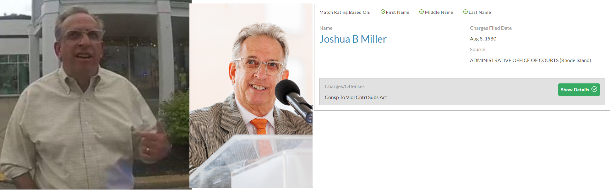 He's a Rhode Island Democratic state senator who vandalized a car with a Trump bumper sticker in June 2023. Miller changed clothes in an order to avoid arrest. He later told police the owner of the car was a "gun nut". He was charged with vandalism. Miller previously told a person asking him questions about the 2nd Amendment to "go f**k yourself". Several Rhode Island state reps called for Miller's resignation after his arrest. He has a 1980 arrest for conspiring to violate the controlled substances act, but charges were dismissed. Miller has represented Cranston and Providence since 2006. He owns a Providence microbrewery and restaurant called the Trinity Brewhouse. He lives in a nice little house in Cranston. https://archive.ph/mAJ5R https://en.wikipedia.org/wiki/Joshua_Miller_(Rhode_Island_politician) https://www.trinitybrew.com/