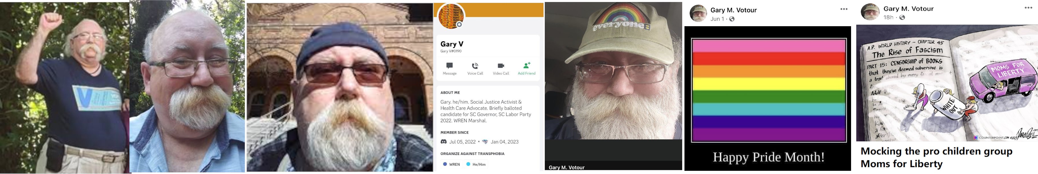 Gary Michael Votour (born Feb. '59) is a former Labor Party candidate for the South Carolina governorship. He's also a member of the extremist Organize Against Transphobia (OAT) group and had an account on OAT's leaked Discord server (see pic). OAT disrupted a TPUSA event at the University of South Carolina in 2023 and has Tweeted messages that appear to threaten SCOTUS. Votour is retired but worked as an artist and publisher. We're not sure if he's transgender or just an "ally"; he's married to a real woman, and he doesn't look like the typical tranny. He lives in the Woodfield neighborhood of Columbia. https://archive.ph/ZRE6V https://www.linkedin.com/in/gary-votour-67148143 https://wmkinstitute.com/wp-content/uploads/2023/07/Organize-Against-Transphobia-Discord-Documents-Screenshots.zip (Discord leak)