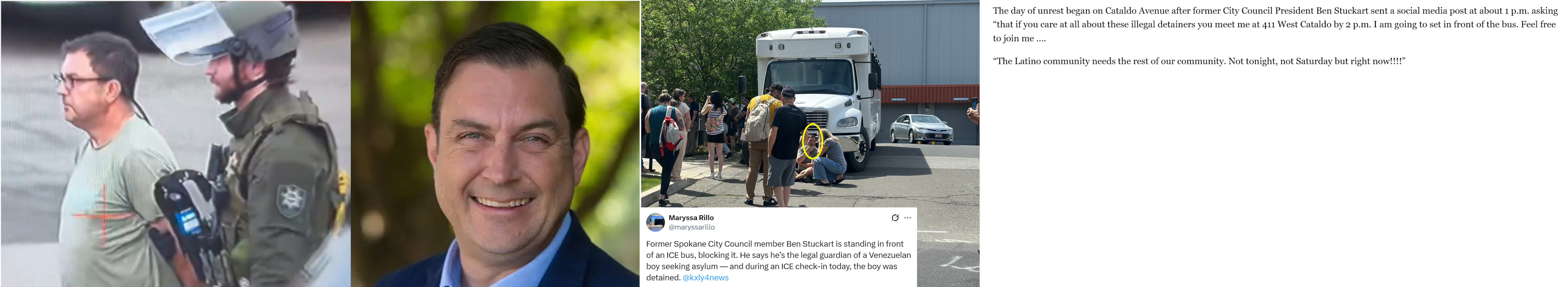 Benjamin "Ben" T. Stuckart, born Nov. '71, is a former city council president who was arrested at a June 2025 anti-ICE protest in Spokane. He was charged with failure to disperse. He was harboring an illegal alien from Venezuela who was seeking asylum. The illegal was detained by ICE at a check-in. This pissed of Stuckart who sat down in front of an ICE bus to block it. The left-wing media referred to the illegal as a "boy" but he turned 21 the day he was detained. Stuckart was one of the ringleaders of the Spokane immigration insurrection, encouraging leftists to join him at ICE's building. As of 6/12/25, 30 protesters have been arrested in Spokane. Stuckart was accused of violating ethics policies while city council president. He's a Democrat, of course. He lives in a modest home in Spokane's Rockwood neighborhood. https://web.archive.org/web/20250612161730/https://www.kxly.com/news/former-spokane-city-councilman-booked-into-jail-following-protest-at-ice-building/article_3fe05566-0166-4d63-9e46-4122b34f6da9.html https://web.archive.org/web/20250612163418/https://shiftwa.org/has-ben-stuckart-again-violated-city-of-spokane-ethics-policies/