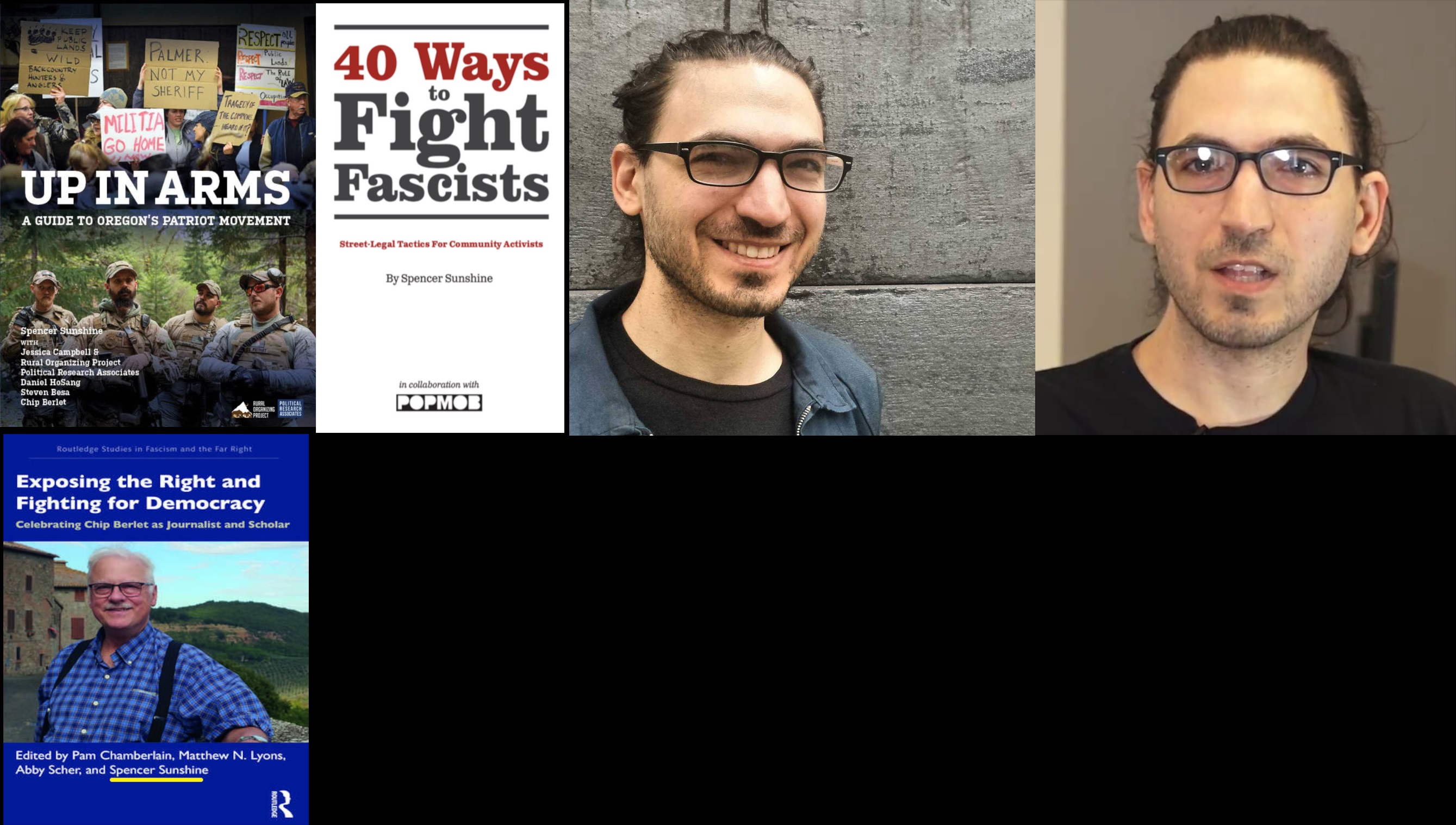 Spencer George Sunshine is an author and researcher who admits to attending the Unite the Right violent counter-protest in Charlottesville. He may have been one of the organizers of the counter-protest. He's a doxxer and monitor of the "far right" who wrote a book about the Oregon patriot movement. He also wrote a book on street tactics for fighting "fascists" that was published by left-wing media outlet Pop Mob. He collaborated on a third book titles: "Exposing the Right and Fighting for Democracy". He claims to have been an activist for 25 years. He's written critiques on the left's antisemitism. Sunshine has a PhD in sociology. https://archive.vn/dj3ea, https://archive.vn/g8uUw, https://archive.vn/POY8u https://web.archive.org/web/20210125225330/http://transformativestudies.org/wp-content/uploads/Spencer-Sunshine.pdf https://www.patreon.com/spencersunshine