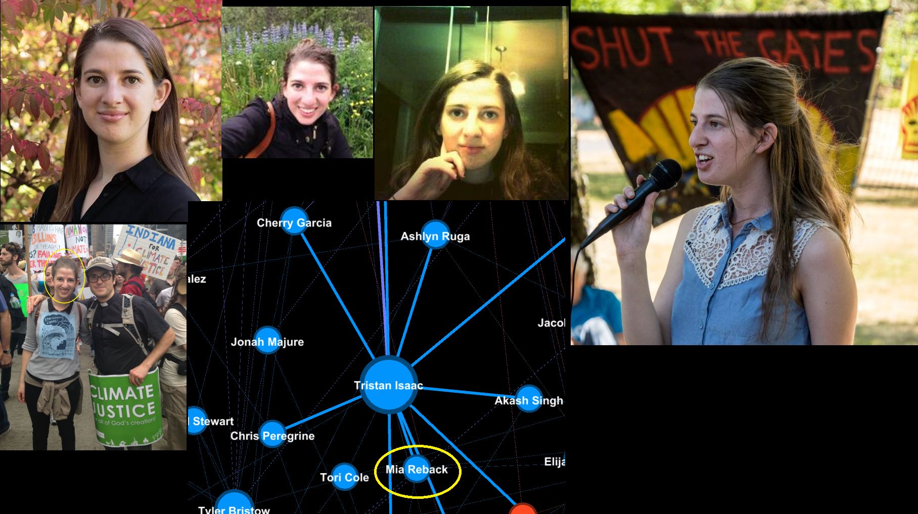 Mia Rose Reback (DOB: 08/11/92) is allegedly connected on social media to the Tristan Romine-Mann (Tristan Isaac) group within Portland Antifa. Her advocacy appears to be mostly environmental in nature. She worked for the City of Portland for a while and then obtained a Masters at Yale University's environmental school. She did her undergrad at Reed College in Portland. Reback now works for RMI, an environmental think tank in L.A. While living in Portland she worked as a community organizer, developing community-based climate policy and leading campaigns against new fossil fuel infrastructure projects. In 2016, she testified at a Portland City Council meeting urging the city to abandon fossil fuels. She may have participated in a kayak protest against Shell organized by Greenpeace. She lives in Los Angeles with her father and a woman who's probably her step-mother in a house valued at nearly $1 mil. Interestingly, the house if obscured on Google street view so perhaps she's stalked by an ex? She's probably not prominent enough to be stalked by members of the right. https://archive.vn/R8aMF, https://archive.vn/TjjAZ, https://archive.vn/Rmtne https://www.youtube.com/watch?v=-ItQYKhaxnM&ab_channel=350PDXWeb