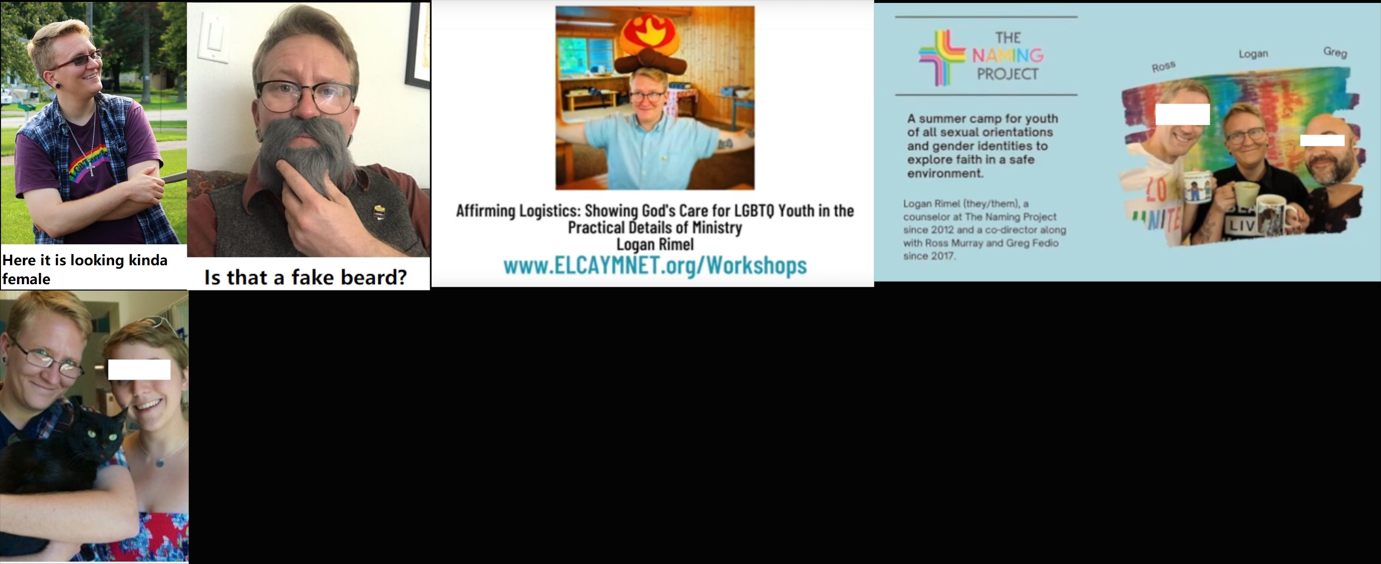 Logan Elliot Rimel (DOB: 05/26/88) is a tranny, gender fluid Lutheran who participated in the Charlottesville Unite the Right counter-protest. It wrote an essay praising Antifa saying, it outsourced its "sin of violence" to the antifa who "put their bodies between these armed white supremacists and those of us who could not or would not fight." It's a Lutheran lay-thing and the parish administrator at University Lutheran Chapel of Berkeley (CA). Rimel also seems to be some sort of LBGTQ youth minister although it doesn't appear to be ordained. It ran a summer camp called "The Naming Project". I suppose it helped gay kids add new letters to their LGBTQ.. etc. acronym. It has a B.A. from Vassar and is studying for its Masters of Divinity at Pacific Lutheran Theological Seminary. Rimel describes itself as a pacifist Lutheran and claims to be a transgender, gender fluid man. I'm not sure if it's M>F or F>M, presumably F>M. It seems to enjoy eating and claims to have talked itself out of eating an entire pie once. https://archive.is/opHbL, https://archive.is/92NUG, https://archive.is/6dtET https://www.youtube.com/watch?v=7ZGPu7qXrFs&t=1s&ab_channel=ELCAYMNetwork