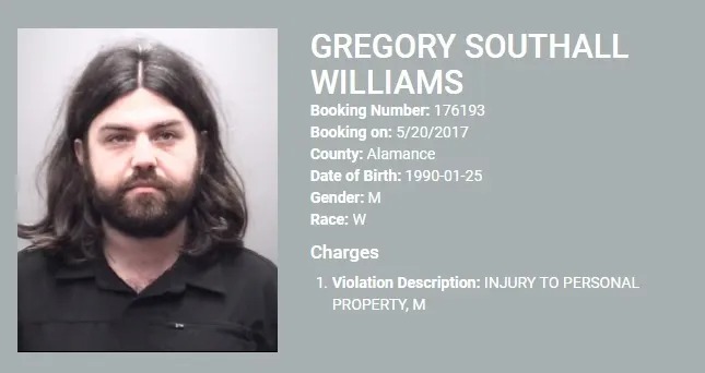 Self-described “community activist”, Gregory Southall Williams of Durham, was charged with misdemeanor resisting a law enforcement officer. https://ladyliberty1885.com/2017/06/02/after-arrests-in-nc-local-iww-chapter-deletes-social-media-accounts/