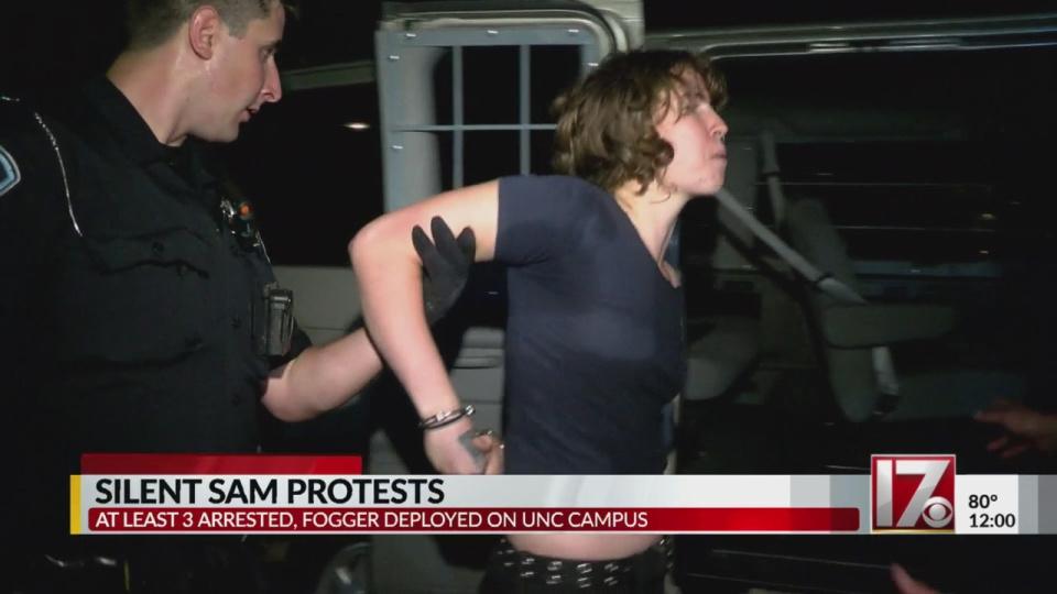 https://abc11.com/police-identify-3-people-arrested-during-silent-sam-demonstration/4108906/ https://twitter.com/ChapelHillPD/status/1035356817382027264