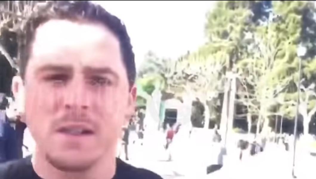 Article about him incl. pictures https://www.thegatewaypundit.com/2020/06/black-lives-matter-activist-loses-one-testicles-shot-balls-rubber-bullets-george-floyd-riots/ Also second picture he's got a sign for the MK which was the armed wing of the ANC in South Africa, involved in landmine campaigns, bombings and other attacks on civilian targets. "It was subsequently classified as a terrorist organization by the South African government and the United States" https://en.wikipedia.org/wiki/UMkhonto_we_Sizwe#1980s:_Bombings