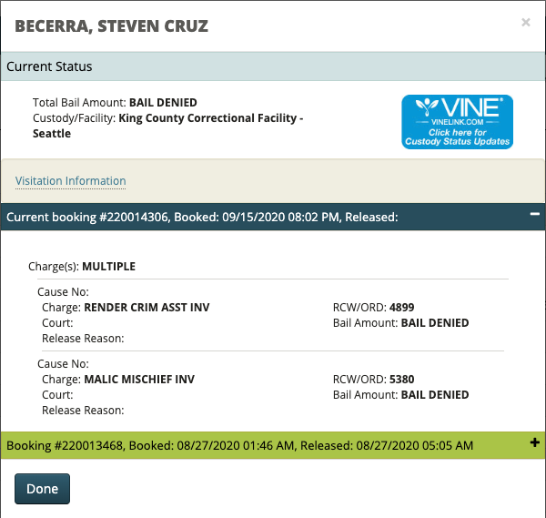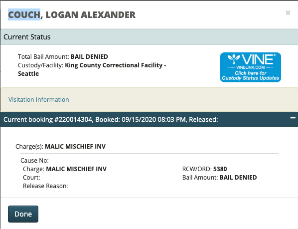 https://twitter.com/PoliceAntifa/status/1071949348299137024 https://ingress.kingcounty.gov/Public/JILS/default.aspx