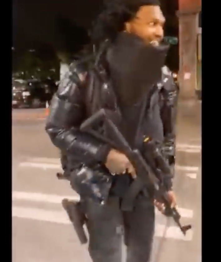 https://bigleaguepolitics.com/watch-chaz-warlord-seen-handing-out-guns-to-strangers/ https://en.wikipedia.org/wiki/Raz_Simone The so called 'Warlord of CHAZ'. At first seemed like another self promoting soundcloud checkout my mixtape rapper, but is clearly working hand in hand with Antifa militant within CHAZ. Handing out rifles to some pretty young looking people, enforcing CHAZ laws (which are totally made up and arbitrary), assaulting random people on the street and so on. He gave an interview to CNN while openly carrying a handgun. He has priors for child abuse and possession of MJ so it's not even clear he can legally own a gun. https://www.cnn.com/2020/06/15/us/seattle-capitol-hill-autonomous-zone-monday/index.html